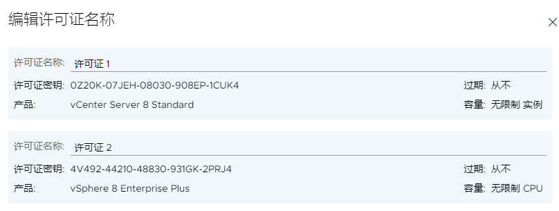 VCSA 8 0F41K-0MJ4H-M88U1-0C3N0-0A214